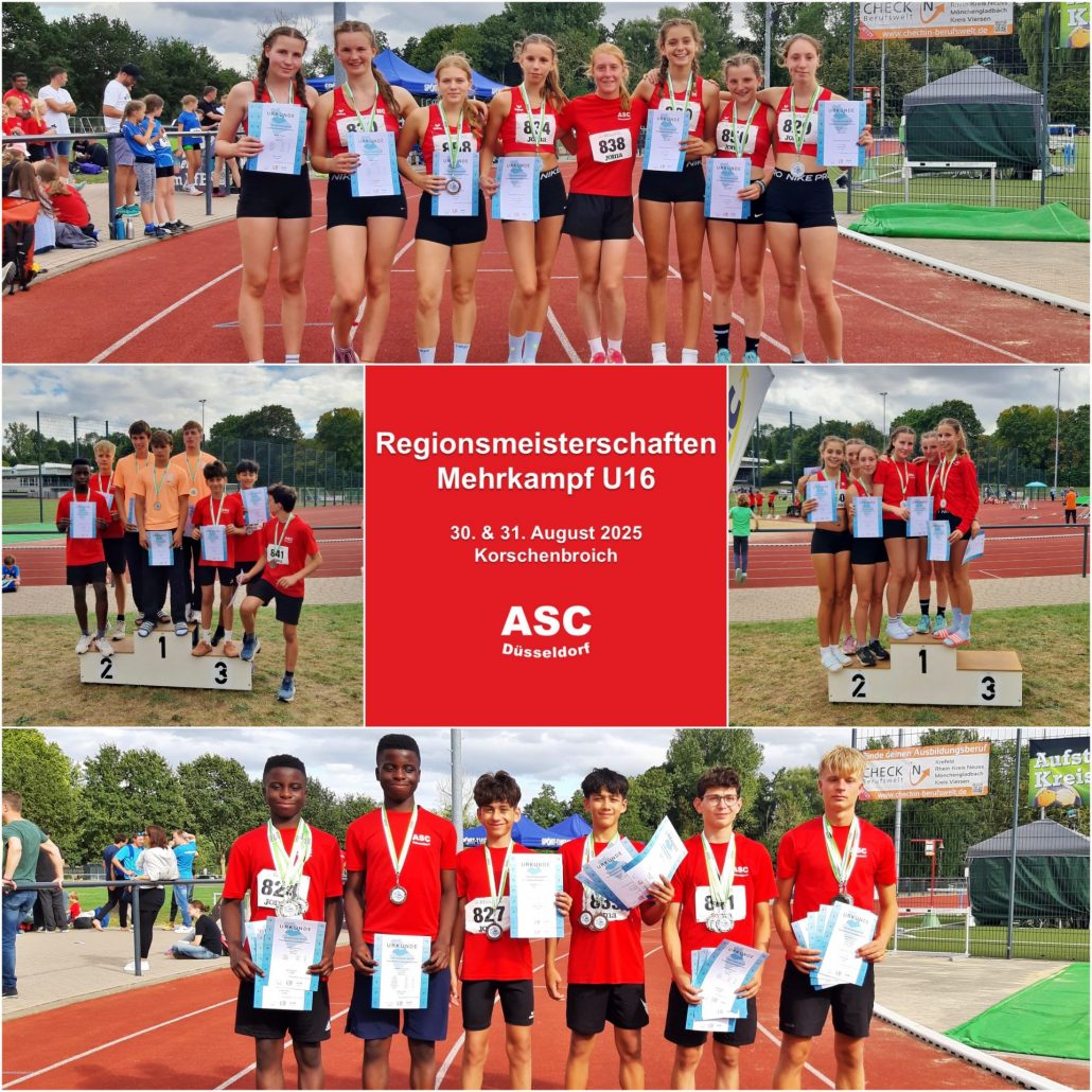 Für die ASC-Mehrkämpfer*innen der U16 ging es in der letzten Phase der Freiluftsaison am 30.-31. August nach Korschenbroich zu den Regionsmeisterschaften im Mehrkampf. Mit 9 Athleten und 9 Athletinnen ging der ASC Düsseldorf an den Start der zweitätigen Meisterschaft und gewann in den Einzel- und Mannschaftswertungen zahlreiche Titel und Medaillen: 5x Gold, 7x Silber, 3x Bronze und 17 Top-8 Platzierungen!