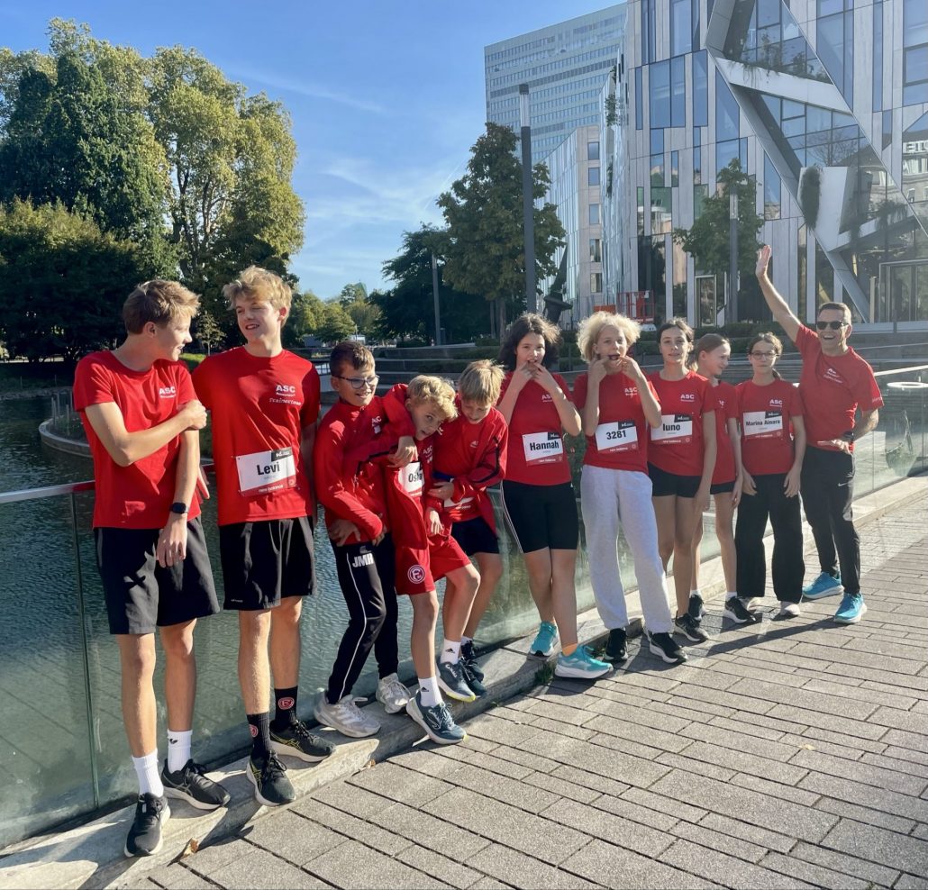 Bei strahlendem Sonnenschein und spätsommerlichen Temperaturen gingen am Sonntagmorgen, dem 7. September 2025, 14 ASC-Athletinnen und Athleten in den Altersklassen U14 bis U20 an den Start der legendären Kö Meile – 1,609 km entlang der prachtvollen Königsallee. Die Strecke versprach von Beginn an beste Laufbedingungen und eine mitreißende Atmosphäre: Konfetti, Musik, eine Cheerzone und zur Belohnung im Ziel eine Medaille und ein Donut – perfekte Zutaten für sportliche Höchstleistungen und strahlende Gesichter.