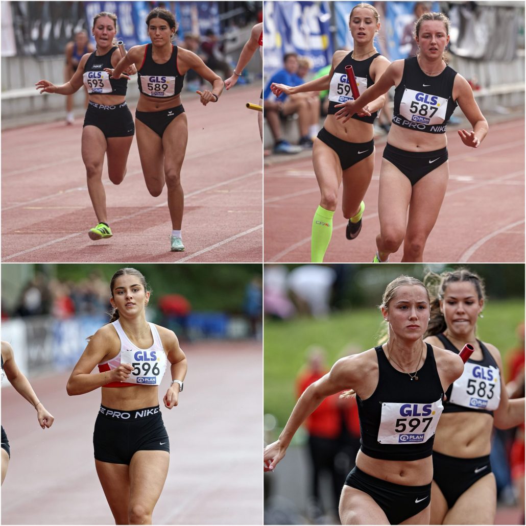 Es folgten die 4x100m Staffeln der U18. Hier hatten sich beide Staffeln unserer StG Düsseldorf-Moers (Moerser TV, TV Kalkum-Wittlaer, ASC Düsseldorf) qualifiziert: die MU18 war am 04.06. in Grefrath 44,57s (DM-Norm: 44,80s), die WU18 am 14.06. in Krefeld 49,67s (DM-Norm: 49,90s) gelaufen und reisten nun als 23. bzw. 35. an. In der Besetzung Lukas Binn, Felix Klöckner, Henry Fehlberg, Emil Eggerstedt (Philip Klarhöfer, Theo Tietze) lief die Staffel der MU18 mit Schlussläufer Emil neue Bestzeit in 44,16s, womit sie Vierter in ihrem Zeitendlauf und 20. in der Gesamtwertung wurden. Mit Sofija an Position 2, lief die Staffel der WU18 in der Besetzung Rafaela Antoniou, Sofija Krco, Merrit van Leyen, Fiona Pullig (Cosima Sacco, Natalie Kleinhietpass) eine Zeit von 50,12s, womit sie Fünfte in ihrem Zeitendlauf und 30. in der Gesamtwertung wurden.