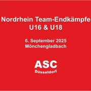 Am 6. September fanden in Mönchengladbach die diesjährigen Nordrhein Team-Endkämpfe der Altersklassen U14, U16 und U18 statt. Für das Finale der besten Mannschaften hatten sich auch die männlichen und weiblichen Teams der U14 des ASC Düsseldorf qualifiziert. Im spannenden Wettkampf erreichte die MJU14 den sechsten Platz, und die WJU14 durfte sich über einen hervorragenden vierten Platz freuen.