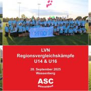 Bei den LVN Regionsvergleichskämpfen am 28. September in Wassenberg traten die vier Regionen des Landesverbands Nordrhein (Mitte, Nord, Südost, Südwest) als Mannschaften in bis zu 11 Disziplinen gegeneinander an. Für die Region Mitte waren 14 Athlet*innen des ASC Düsseldorf nominiert. Die Teams der weiblichen U14 & U16 gewannen die Vergleichskämpfe; die Teams der männlichen U14 & U16 wurden Zweiter.