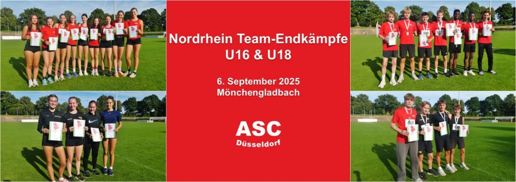 Die besten Teams der weiblichen und männlichen Jugend U14, U16 und U18 kamen am 6. September in Mönchengladbach zu den Nordrhein Team-Endkämpfen zusammen. Der ASC Düsseldorf war in allen sechs LVN-Finals mit qualifizierten Teams vertreten. Die ASC-Mannschaften der WJU14 wurde Vierte, der MJU14 Sechster, der WJU16 Vierte und der MJU16 Zweiter. Die StG Düsseldorf-Moers (Moerser TV, TV Kalkum-Wittlaer, ASC Düsseldorf) wurde mit der WJU18 Fünfte und mit der MJU18 Zweiter.